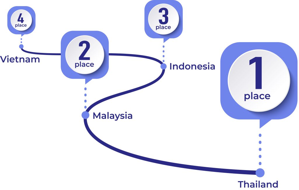 Thailand’s attractiveness is the result of several activities at the government level. It focuses on development based on Thailand 4.0: a plan to turn into a new value-based economy by adopting green and smart technologies. The emphasis is on growth in Robotic Process Automation (RPA), Blockchain, and Internet of Things (IoT), as well as nurturing data scientists and IT professionals, mainly in fintech, biotech and food technology. Government institutes nurture technical education. More than 24 universities provide development opportunities for an average of 7,000 graduates in technological fields per year. In the 2019 poll, Thailand topped the list in terms of attracting R&D and technical professionals across the ASEAN zone (NIKKEI Asia, 2020), with Malaysia in 2nd place, Indonesia in 3rd and Vietnam securing 4th place. This is why the country is attracting tech headhunters around the globe.